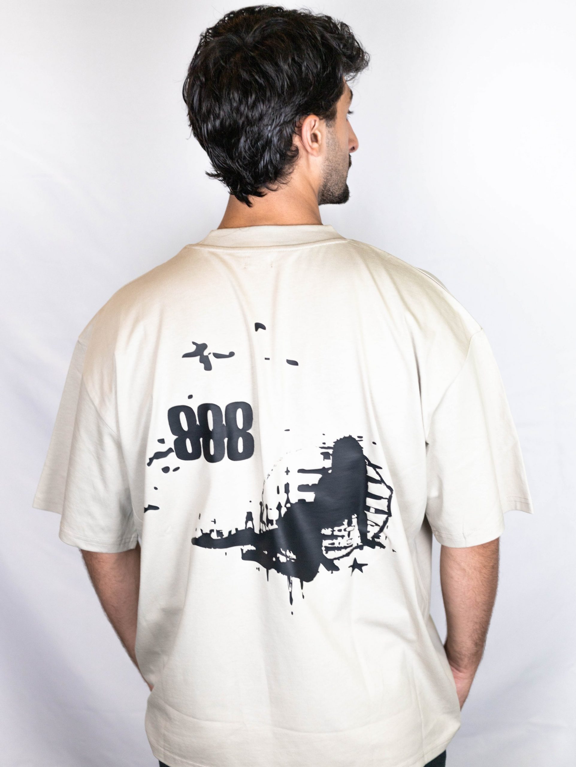 Camiseta oversize Gris, ideal para el verano, con cuello de canale, con estampado en DTF, con un corte recto y un poco ancho para cualquier tipo de cuerpo.